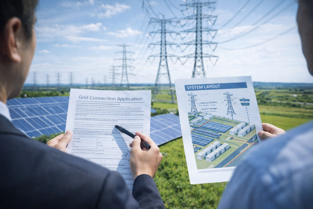 系統用蓄電池事業やバイオマス発電所、太陽光発電所において、開発段階から事業化までを見据えた支援を行っています。用地条件や周辺環境、法令制限を踏まえた立地検討を行い、不動産免許を有する法人としての知見を活かして、用地選定・地権者様との交渉、権利関係の整理をサポートします。加えて、電力会社への系統接続検討申請や関連制度の整理など、事業初期における実務を一貫して支援しています。単なる設備導入にとどまらず、事業リスクを見極めながら、実行可能性の高い再生可能エネルギー事業の構築を支援することを重視しています。